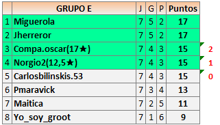 Deja un comentarioEn está página se irán publicando los resultados de las diferentes partidas, siendo ambos jugadores responsables de subirlos o de comprobar que ya hayan sido publicados insertando un COMENTARIO en la parte inferior de la pantalla (opción “Deja tu comentario”), indicando el nombre de los dos jugadores y los puntos obtenidos en la partida.