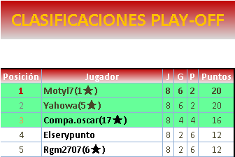 En los playoffs se mantendrán ocultos los resultados para que ningún jugador especule con ellos.