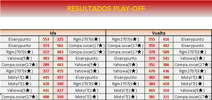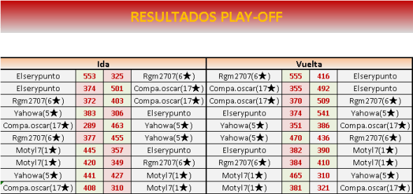 Fin PLAY OFF VUELTA: 09 DICIEMBRE a las 21:00