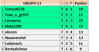 En está página se irán publicando los resultados de las diferentes partidas, siendo ambos jugadores responsables de subirlos o de comprobar que ya hayan sido publicados insertando un COMENTARIO en la parte inferior de la pantalla (opción “Deja tu comentario”), indicando el nombre de los dos jugadores y los puntos obtenidos en la partida.