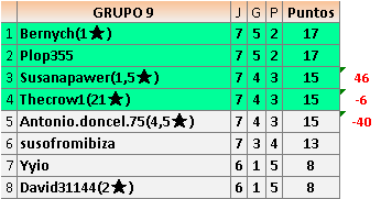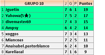 Deja un comentarioEn está página se irán publicando los resultados de las diferentes partidas, siendo ambos jugadores responsables de subirlos o de comprobar que ya hayan sido publicados insertando un COMENTARIO en la parte inferior de la pantalla (opción “Deja tu comentario”), indicando el nombre de los dos jugadores y los puntos obtenidos en la partida.