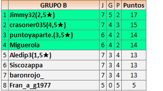 Deja un comentarioEn está página se irán publicando los resultados de las diferentes partidas, siendo ambos jugadores responsables de subirlos o de comprobar que ya hayan sido publicados insertando un COMENTARIO en la parte inferior de la pantalla (opción “Deja tu comentario”), indicando el nombre de los dos jugadores y los puntos obtenidos en la partida.