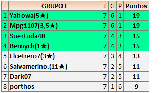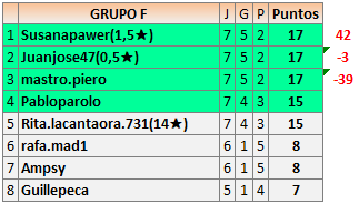 Deja un comentarioEn está página se irán publicando los resultados de las diferentes partidas, siendo ambos jugadores responsables de subirlos o de comprobar que ya hayan sido publicados insertando un COMENTARIO en la parte inferior de la pantalla (opción “Deja tu comentario”), indicando el nombre de los dos jugadores y los puntos obtenidos en la partida.