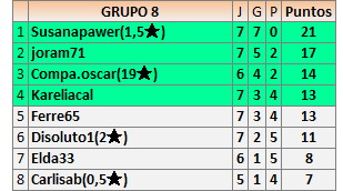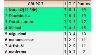 Deja un comentarioEn está página se irán publicando los resultados de las diferentes partidas, siendo ambos jugadores responsables de subirlos o de comprobar que ya hayan sido publicados insertando un COMENTARIO en la parte inferior de la pantalla (opción “Deja tu comentario”), indicando el nombre de los dos jugadores y los puntos obtenidos en la partida.