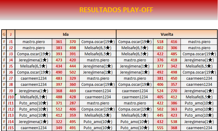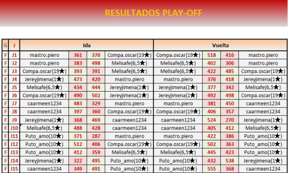 Fin PLAY OFF VUELTA: 8 de diciembre a las 21:00