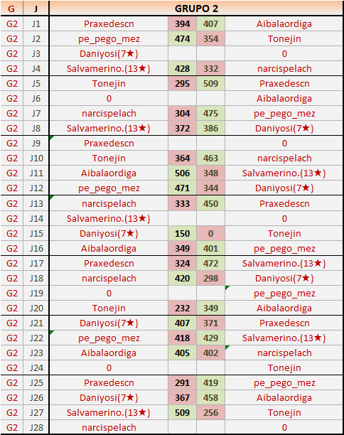 Deja un comentarioEn está página se irán publicando los resultados de las diferentes partidas, siendo ambos jugadores responsables de subirlos o de comprobar que ya hayan sido publicados insertando un COMENTARIO en la parte inferior de la pantalla (opción “Deja tu comentario”), indicando el nombre de los dos jugadores y los puntos obtenidos en la partida.