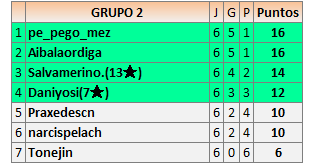 Deja un comentarioEn está página se irán publicando los resultados de las diferentes partidas, siendo ambos jugadores responsables de subirlos o de comprobar que ya hayan sido publicados insertando un COMENTARIO en la parte inferior de la pantalla (opción “Deja tu comentario”), indicando el nombre de los dos jugadores y los puntos obtenidos en la partida.