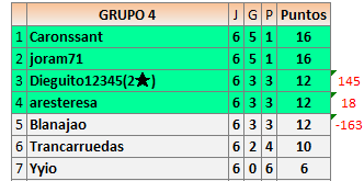 Deja un comentarioEn está página se irán publicando los resultados de las diferentes partidas, siendo ambos jugadores responsables de subirlos o de comprobar que ya hayan sido publicados insertando un COMENTARIO en la parte inferior de la pantalla (opción “Deja tu comentario”), indicando el nombre de los dos jugadores y los puntos obtenidos en la partida.