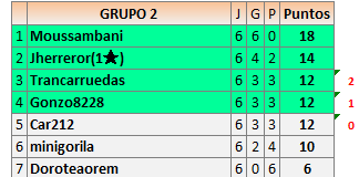 1En está página se irán publicando los resultados de las diferentes partidas, siendo ambos jugadores responsables de subirlos o de comprobar que ya hayan sido publicados insertando un COMENTARIO en la parte inferior de la pantalla (opción “Deja tu comentario”), indicando el nombre de los dos jugadores y los puntos obtenidos en la partida.