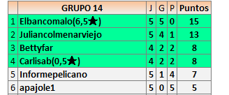 1En está página se irán publicando los resultados de las diferentes partidas, siendo ambos jugadores responsables de subirlos o de comprobar que ya hayan sido publicados insertando un COMENTARIO en la parte inferior de la pantalla (opción “Deja tu comentario”), indicando el nombre de los dos jugadores y los puntos obtenidos en la partida.