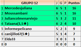 Deja un comentarioEn está página se irán publicando los resultados de las diferentes partidas, siendo ambos jugadores responsables de subirlos o de comprobar que ya hayan sido publicados insertando un COMENTARIO en la parte inferior de la pantalla (opción “Deja tu comentario”), indicando el nombre de los dos jugadores y los puntos obtenidos en la partida.