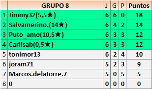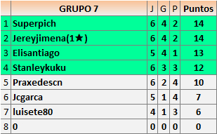 Deja un comentarioEn está página se irán publicando los resultados de las diferentes partidas, siendo ambos jugadores responsables de subirlos o de comprobar que ya hayan sido publicados insertando un COMENTARIO en la parte inferior de la pantalla (opción “Deja tu comentario”), indicando el nombre de los dos jugadores y los puntos obtenidos en la partida.