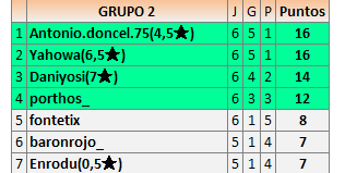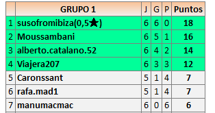 Deja un comentarioEn está página se irán publicando los resultados de las diferentes partidas, siendo ambos jugadores responsables de subirlos o de comprobar que ya hayan sido publicados insertando un COMENTARIO en la parte inferior de la pantalla (opción “Deja tu comentario”), indicando el nombre de los dos jugadores y los puntos obtenidos en la partida.