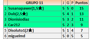 Deja un comentarioEn está página se irán publicando los resultados de las diferentes partidas, siendo ambos jugadores responsables de subirlos o de comprobar que ya hayan sido publicados insertando un COMENTARIO en la parte inferior de la pantalla (opción “Deja tu comentario”), indicando el nombre de los dos jugadores y los puntos obtenidos en la partida.