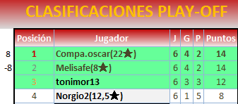 En los playoffs se mantendrán ocultos los resultados para que ningún jugador especule con ellos.
