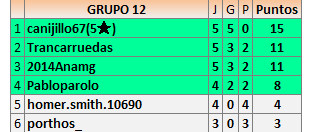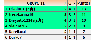 Deja un comentarioEn está página se irán publicando los resultados de las diferentes partidas, siendo ambos jugadores responsables de subirlos o de comprobar que ya hayan sido publicados insertando un COMENTARIO en la parte inferior de la pantalla (opción “Deja tu comentario”), indicando el nombre de los dos jugadores y los puntos obtenidos en la partida.