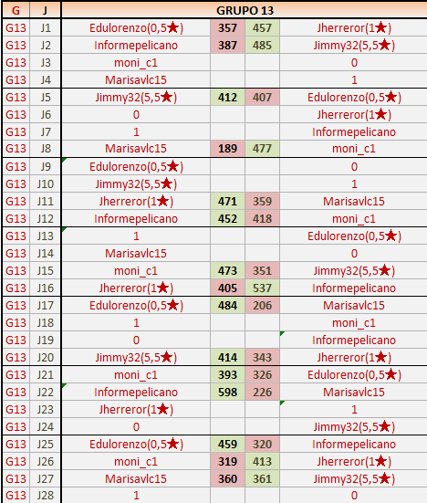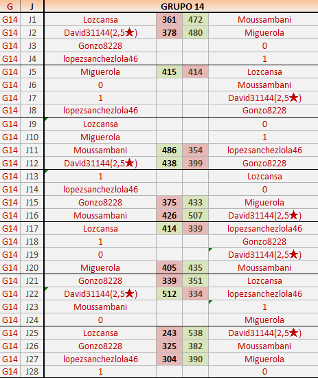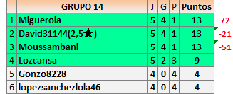 Deja un comentarioEn está página se irán publicando los resultados de las diferentes partidas, siendo ambos jugadores responsables de subirlos o de comprobar que ya hayan sido publicados insertando un COMENTARIO en la parte inferior de la pantalla (opción “Deja tu comentario”), indicando el nombre de los dos jugadores y los puntos obtenidos en la partida.