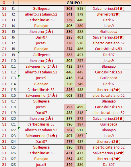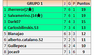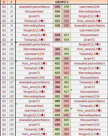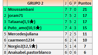 Deja un comentarioEn está página se irán publicando los resultados de las diferentes partidas, siendo ambos jugadores responsables de subirlos o de comprobar que ya hayan sido publicados insertando un COMENTARIO en la parte inferior de la pantalla (opción “Deja tu comentario”), indicando el nombre de los dos jugadores y los puntos obtenidos en la partida.