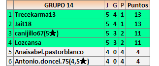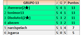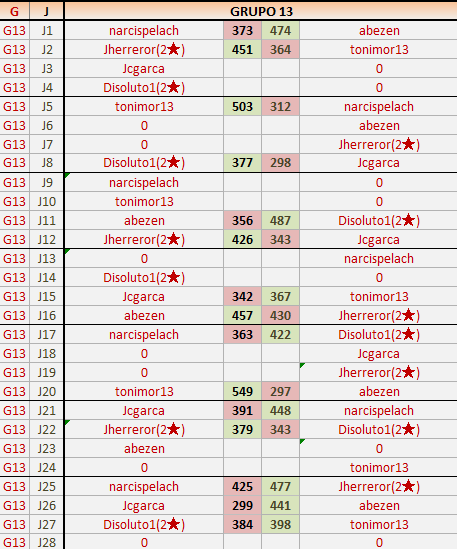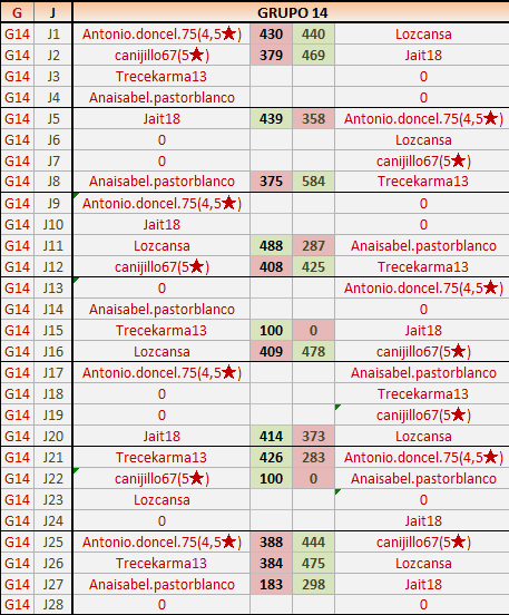 Deja un comentarioEn está página se irán publicando los resultados de las diferentes partidas, siendo ambos jugadores responsables de subirlos o de comprobar que ya hayan sido publicados insertando un COMENTARIO en la parte inferior de la pantalla (opción “Deja tu comentario”), indicando el nombre de los dos jugadores y los puntos obtenidos en la partida.