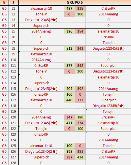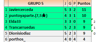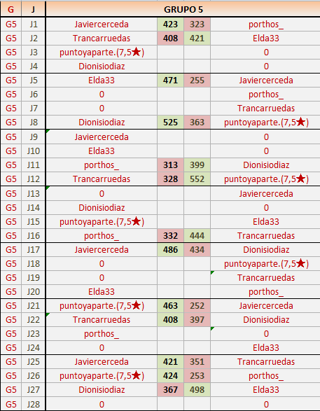 Deja un comentarioEn está página se irán publicando los resultados de las diferentes partidas, siendo ambos jugadores responsables de subirlos o de comprobar que ya hayan sido publicados insertando un COMENTARIO en la parte inferior de la pantalla (opción “Deja tu comentario”), indicando el nombre de los dos jugadores y los puntos obtenidos en la partida.