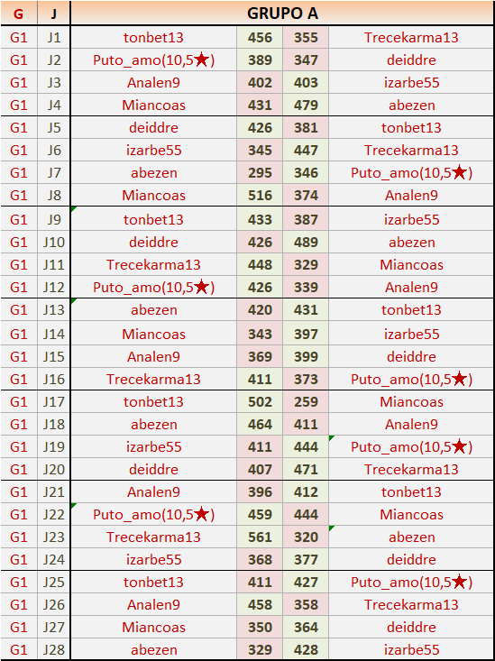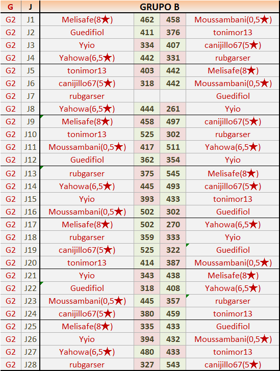 G2J7 rubgarser (316) – Guedifiol (448) G2J13 rubgarser (375) – Melisafe (545)
