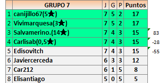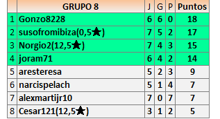 Deja un comentarioEn está página se irán publicando los resultados de las diferentes partidas, siendo ambos jugadores responsables de subirlos o de comprobar que ya hayan sido publicados insertando un COMENTARIO en la parte inferior de la pantalla (opción “Deja tu comentario”), indicando el nombre de los dos jugadores y los puntos obtenidos en la partida.