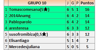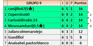 Deja un comentarioEn está página se irán publicando los resultados de las diferentes partidas, siendo ambos jugadores responsables de subirlos o de comprobar que ya hayan sido publicados insertando un COMENTARIO en la parte inferior de la pantalla (opción “Deja tu comentario”), indicando el nombre de los dos jugadores y los puntos obtenidos en la partida.