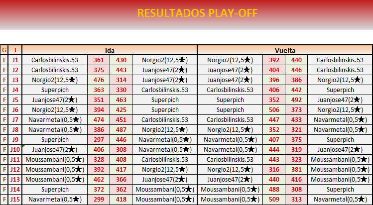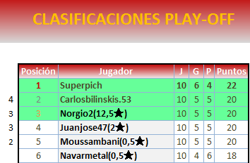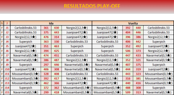 En los playoffs se mantendrán ocultos los resultados para que ningún jugador especule con ellos.