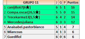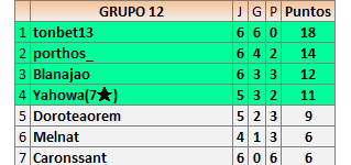 Deja un comentarioEn está página se irán publicando los resultados de las diferentes partidas, siendo ambos jugadores responsables de subirlos o de comprobar que ya hayan sido publicados insertando un COMENTARIO en la parte inferior de la pantalla (opción “Deja tu comentario”), indicando el nombre de los dos jugadores y los puntos obtenidos en la partida.