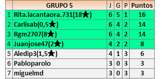 En está página se irán publicando los resultados de las diferentes partidas, siendo ambos jugadores responsables de subirlos o de comprobar que ya hayan sido publicados insertando un COMENTARIO en la parte inferior de la pantalla (opción “Deja tu comentario”), indicando el nombre de los dos jugadores y los puntos obtenidos en la partida.