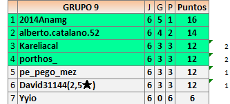Deja un comentarioEn está página se irán publicando los resultados de las diferentes partidas, siendo ambos jugadores responsables de subirlos o de comprobar que ya hayan sido publicados insertando un COMENTARIO en la parte inferior de la pantalla (opción “Deja tu comentario”), indicando el nombre de los dos jugadores y los puntos obtenidos en la partida.