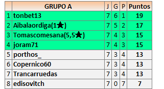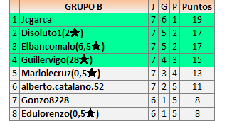 Deja un comentarioEn está página se irán publicando los resultados de las diferentes partidas, siendo ambos jugadores responsables de subirlos o de comprobar que ya hayan sido publicados insertando un COMENTARIO en la parte inferior de la pantalla (opción “Deja tu comentario”), indicando el nombre de los dos jugadores y los puntos obtenidos en la partida.