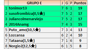 Deja un comentarioEn está página se irán publicando los resultados de las diferentes partidas, siendo ambos jugadores responsables de subirlos o de comprobar que ya hayan sido publicados insertando un COMENTARIO en la parte inferior de la pantalla (opción “Deja tu comentario”), indicando el nombre de los dos jugadores y los puntos obtenidos en la partida.