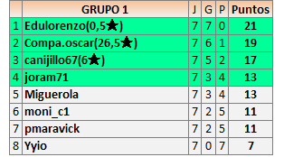 Deja un comentarioEn está página se irán publicando los resultados de las diferentes partidas, siendo ambos jugadores responsables de subirlos o de comprobar que ya hayan sido publicados insertando un COMENTARIO en la parte inferior de la pantalla (opción “Deja tu comentario”), indicando el nombre de los dos jugadores y los puntos obtenidos en la partida.