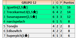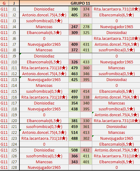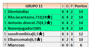 En está página se irán publicando los resultados de las diferentes partidas, siendo ambos jugadores responsables de subirlos o de comprobar que ya hayan sido publicados insertando un COMENTARIO en la parte inferior de la pantalla (opción “Deja tu comentario”), indicando el nombre de los dos jugadores y los puntos obtenidos en la partida.