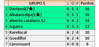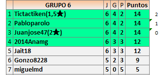 Deja un comentarioEn está página se irán publicando los resultados de las diferentes partidas, siendo ambos jugadores responsables de subirlos o de comprobar que ya hayan sido publicados insertando un COMENTARIO en la parte inferior de la pantalla (opción “Deja tu comentario”), indicando el nombre de los dos jugadores y los puntos obtenidos en la partida.