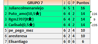 El resultado con Práxedes está al revés yo lo publiqué bien pero ella lo publico equivocado , ella gano la partida , el resto correcto