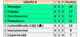 El resultado con Práxedes está al revés yo lo publiqué bien pero ella lo publico equivocado , ella gano la partida , el resto correcto