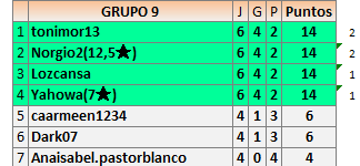 Deja un comentarioEn está página se irán publicando los resultados de las diferentes partidas, siendo ambos jugadores responsables de subirlos o de comprobar que ya hayan sido publicados insertando un COMENTARIO en la parte inferior de la pantalla (opción “Deja tu comentario”), indicando el nombre de los dos jugadores y los puntos obtenidos en la partida.