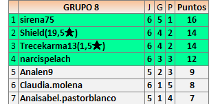 Deja un comentarioEn está página se irán publicando los resultados de las diferentes partidas, siendo ambos jugadores responsables de subirlos o de comprobar que ya hayan sido publicados insertando un COMENTARIO en la parte inferior de la pantalla (opción “Deja tu comentario”), indicando el nombre de los dos jugadores y los puntos obtenidos en la partida.