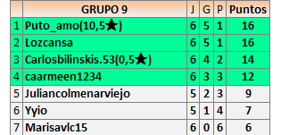Deja un comentarioEn está página se irán publicando los resultados de las diferentes partidas, siendo ambos jugadores responsables de subirlos o de comprobar que ya hayan sido publicados insertando un COMENTARIO en la parte inferior de la pantalla (opción “Deja tu comentario”), indicando el nombre de los dos jugadores y los puntos obtenidos en la partida.