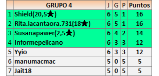 3En está página se irán publicando los resultados de las diferentes partidas, siendo ambos jugadores responsables de subirlos o de comprobar que ya hayan sido publicados insertando un COMENTARIO en la parte inferior de la pantalla (opción “Deja tu comentario”), indicando el nombre de los dos jugadores y los puntos obtenidos en la partida.