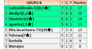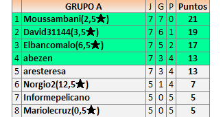 Deja un comentarioEn está página se irán publicando los resultados de las diferentes partidas, siendo ambos jugadores responsables de subirlos o de comprobar que ya hayan sido publicados insertando un COMENTARIO en la parte inferior de la pantalla (opción “Deja tu comentario”), indicando el nombre de los dos jugadores y los puntos obtenidos en la partida.