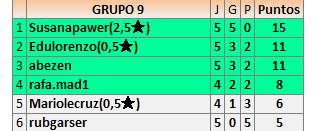Deja un comentarioEn está página se irán publicando los resultados de las diferentes partidas, siendo ambos jugadores responsables de subirlos o de comprobar que ya hayan sido publicados insertando un COMENTARIO en la parte inferior de la pantalla (opción “Deja tu comentario”), indicando el nombre de los dos jugadores y los puntos obtenidos en la partida.