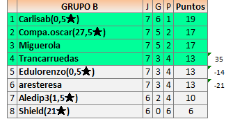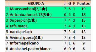 Deja un comentarioEn está página se irán publicando los resultados de las diferentes partidas, siendo ambos jugadores responsables de subirlos o de comprobar que ya hayan sido publicados insertando un COMENTARIO en la parte inferior de la pantalla (opción “Deja tu comentario”), indicando el nombre de los dos jugadores y los puntos obtenidos en la partida.
