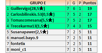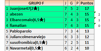 Deja un comentarioEn está página se irán publicando los resultados de las diferentes partidas, siendo ambos jugadores responsables de subirlos o de comprobar que ya hayan sido publicados insertando un COMENTARIO en la parte inferior de la pantalla (opción “Deja tu comentario”), indicando el nombre de los dos jugadores y los puntos obtenidos en la partida.
