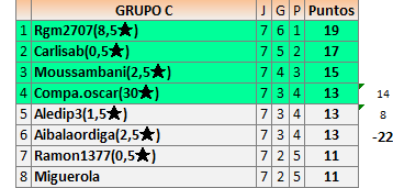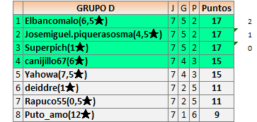 triple empate entre compa, aibala y tú, en vuestros enfrentamientos cada uno gana una partida y pierde otra , entonces hay que ir al puntaje en esas tres partidas y ahí compa tiene +14 puntos y mientras tú tienes +8