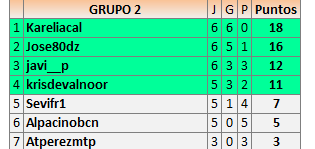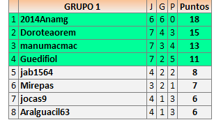 Deja un comentarioEn está página se irán publicando los resultados de las diferentes partidas, siendo ambos jugadores responsables de subirlos o de comprobar que ya hayan sido publicados insertando un COMENTARIO en la parte inferior de la pantalla (opción “Deja tu comentario”), indicando el nombre de los dos jugadores y los puntos obtenidos en la partida.
