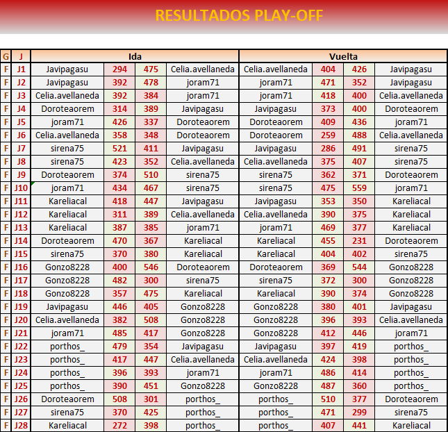 Fin PLAY OFF VUELTA: 1 de mayo a las 21:00