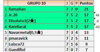Deja un comentarioEn está página se irán publicando los resultados de las diferentes partidas, siendo ambos jugadores responsables de subirlos o de comprobar que ya hayan sido publicados insertando un COMENTARIO en la parte inferior de la pantalla (opción “Deja tu comentario”), indicando el nombre de los dos jugadores y los puntos obtenidos en la partida.